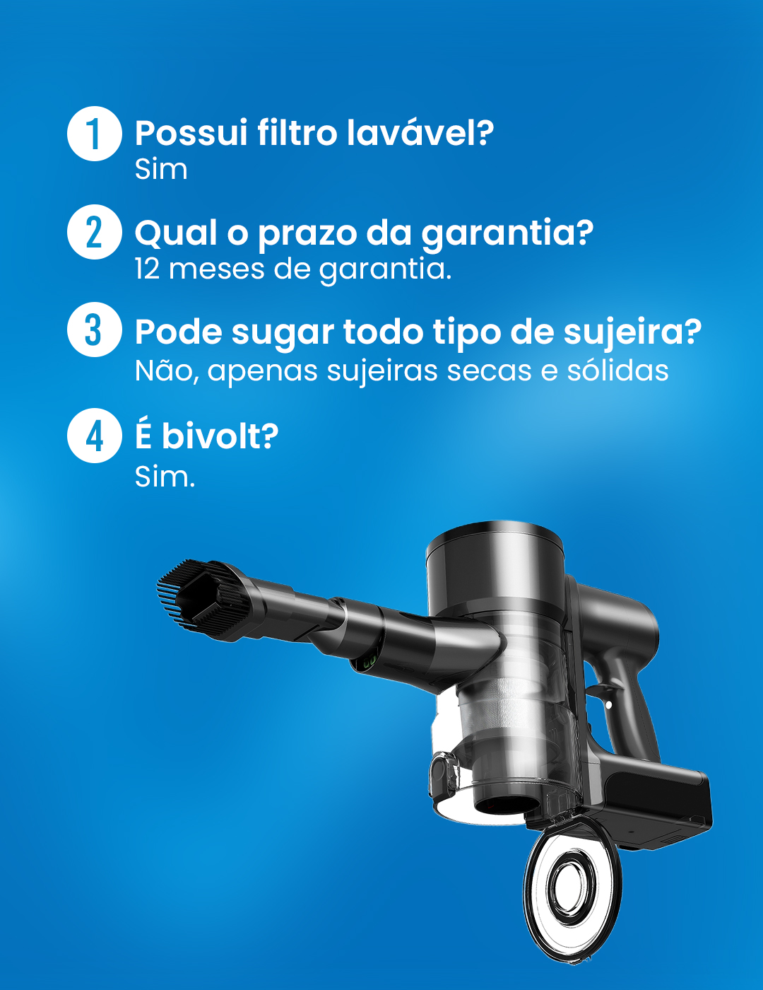 Com design moderno e muito prático, ele se transforma em aspirador de mão em segundos e deixa sua casa impecável com muito menos esforço.