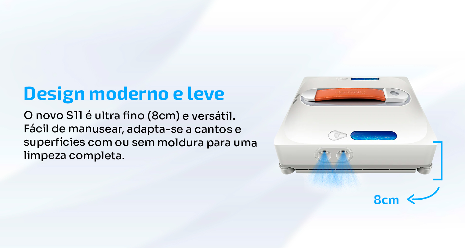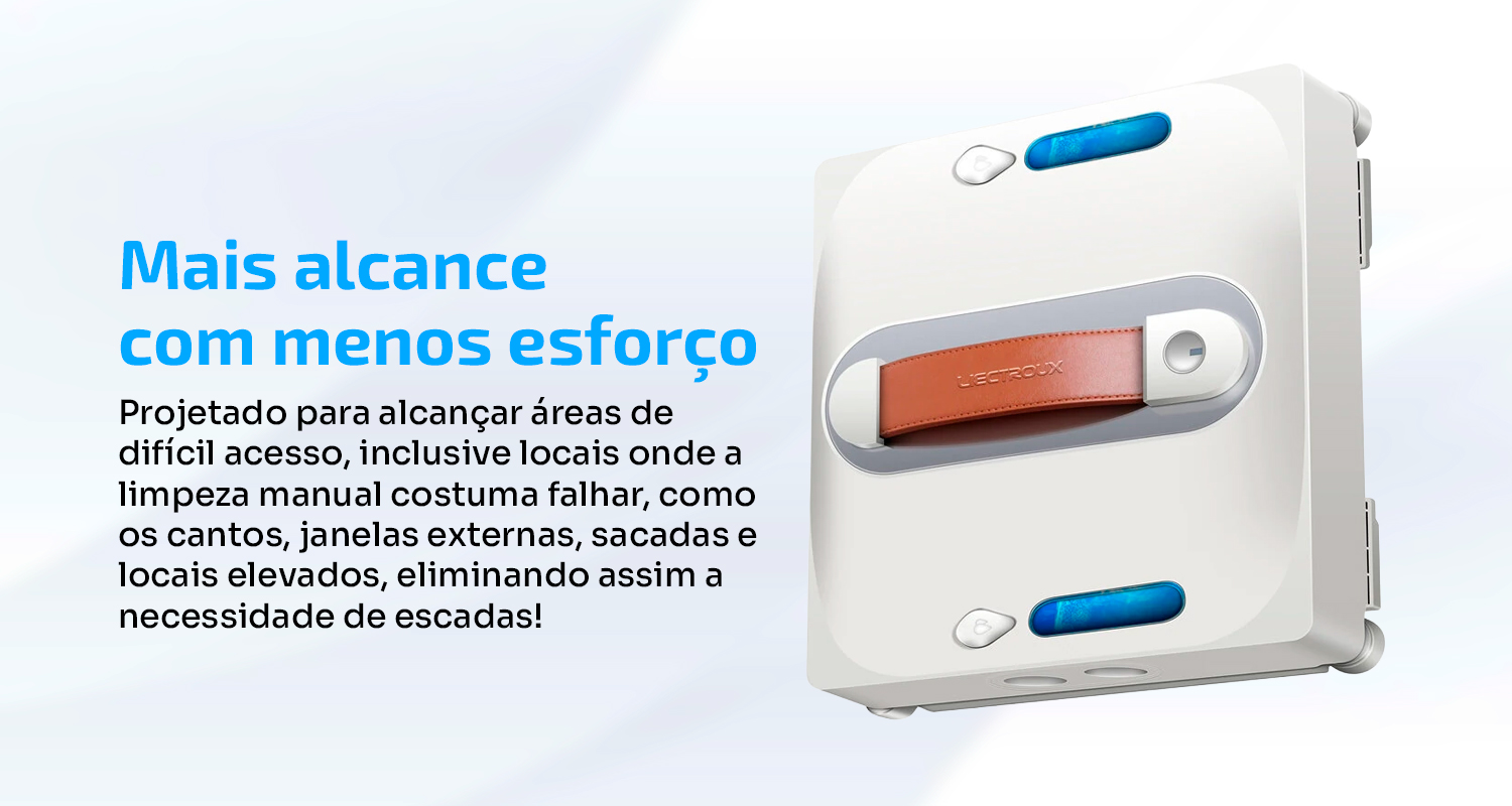 Com o Robô Limpa Vidros Liectroux S11, limpar vidros deixa de ser complicado e vira algo simples e rápido. Ele limpa vidros, janelas, espelhos e azulejos com tecnologia inteligente e potente sucção, garantindo fixação segura e um resultado impecável, por dentro e por fora!Basta um toque para ele fazer todo o trabalho enquanto você relaxa. Moderno, eficiente e fácil de controlar, o S11 é a solução ideal para quem quer mais conforto no dia a dia.