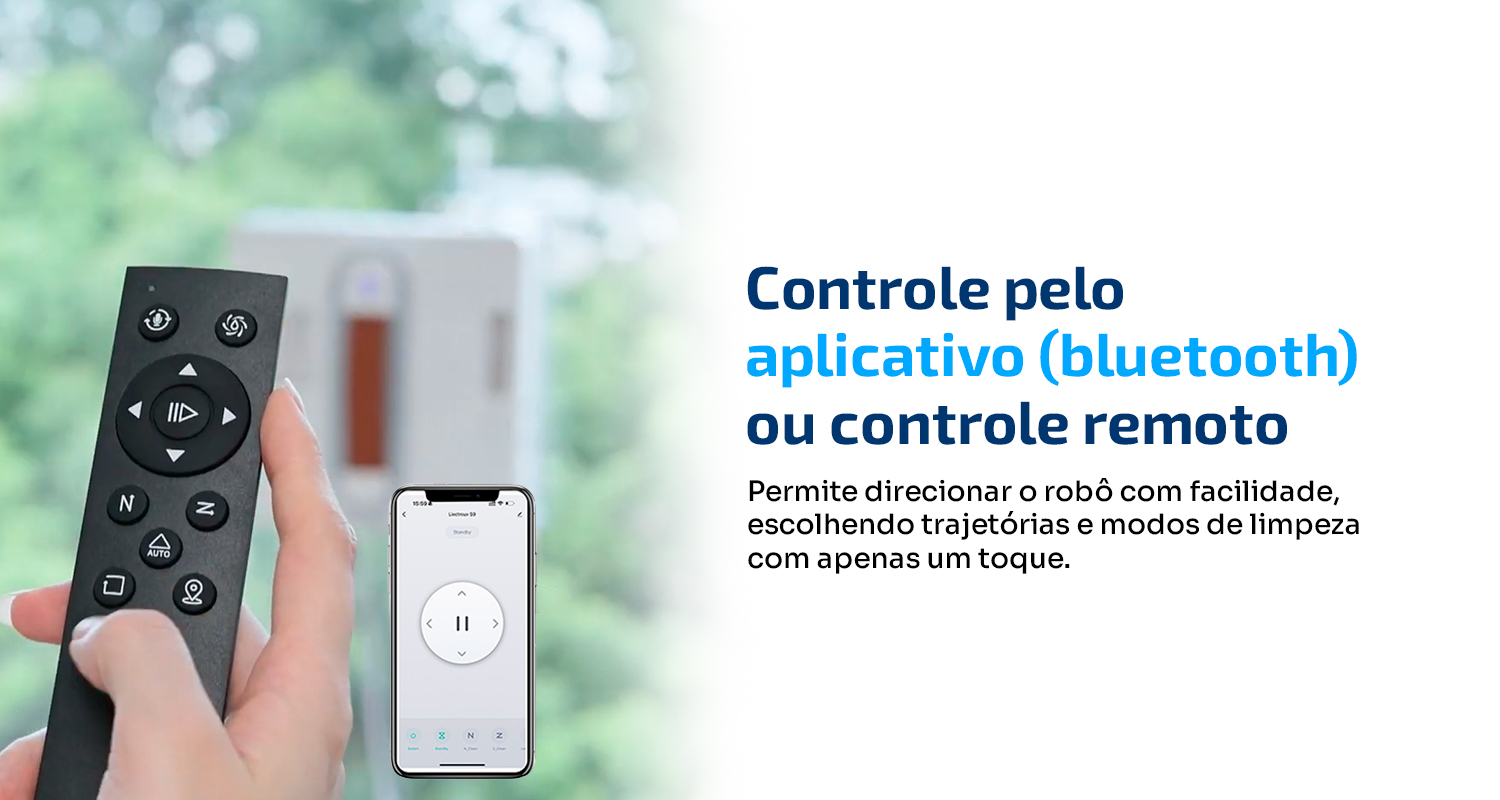 · CONTROLE VIA APLICATIVO (BLUETOOTH): Controle todas as funções pelo aplicativo, incluindo iniciar, pausar, selecionar trajetórias e ajustar modos de limpeza.