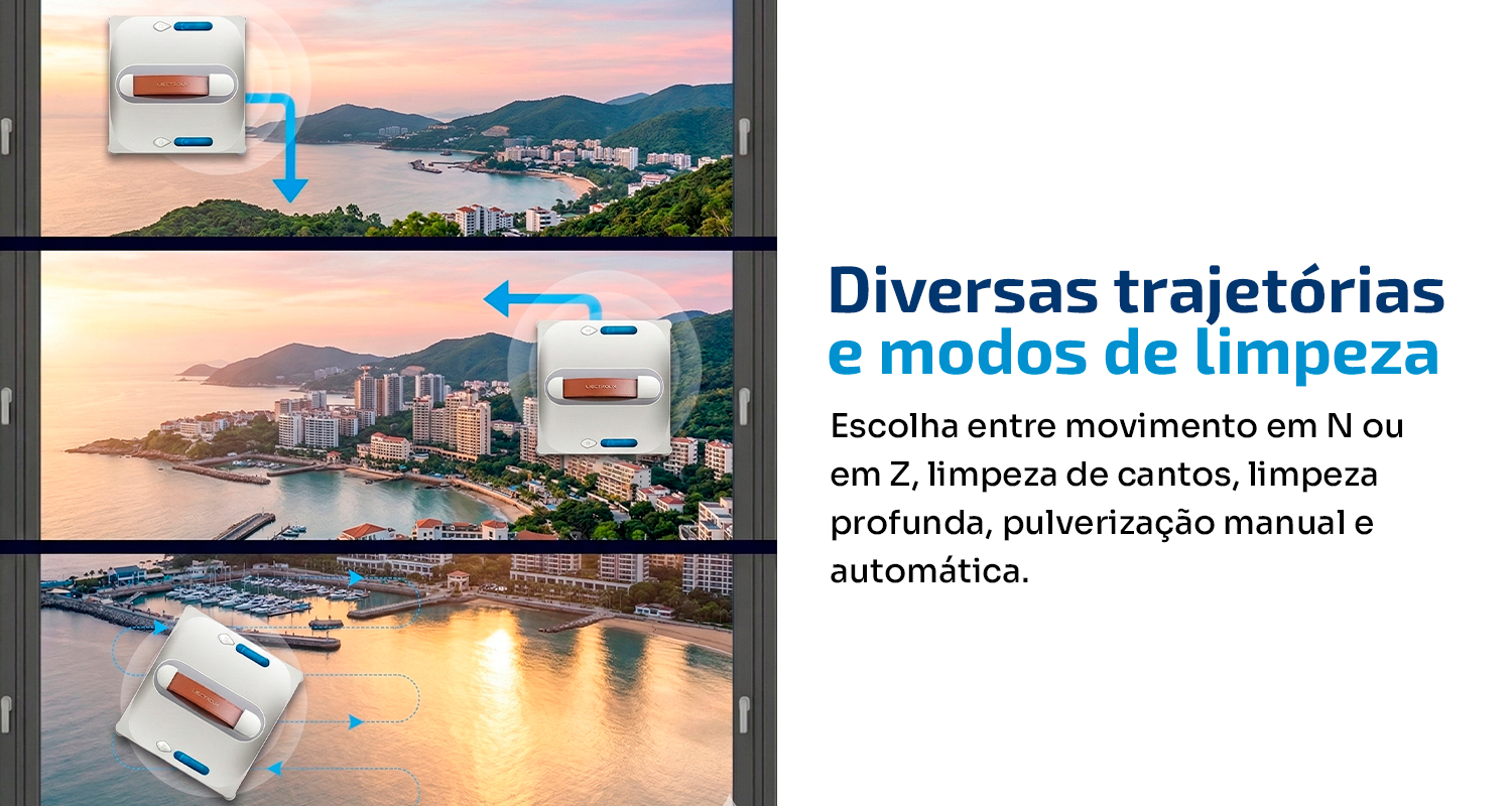 · MODOS AVANÇADOS DE LIMPEZA: Oferece múltiplas trajetórias e modos de limpeza, incluindo: